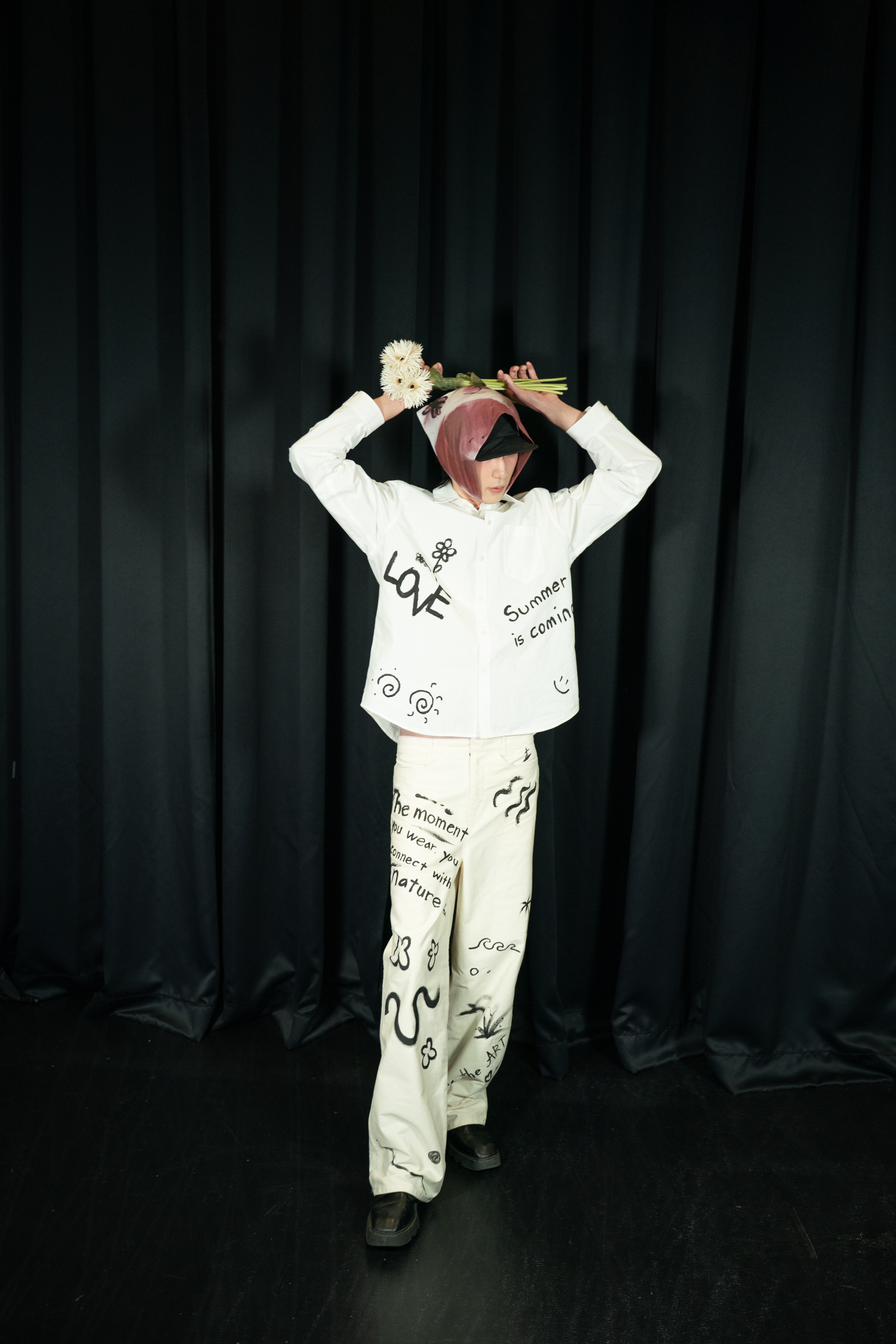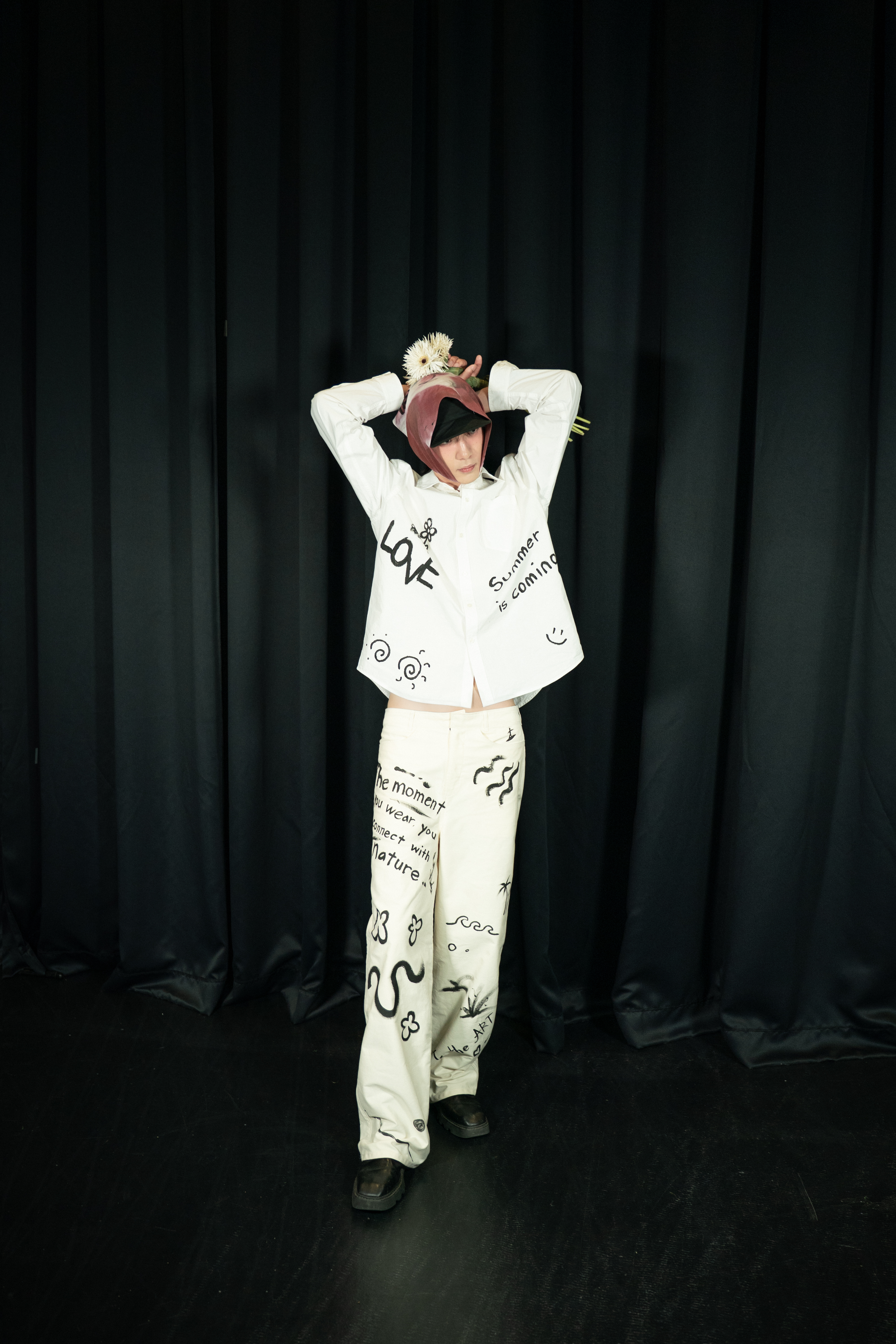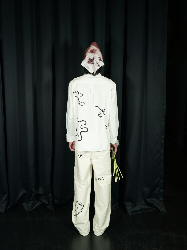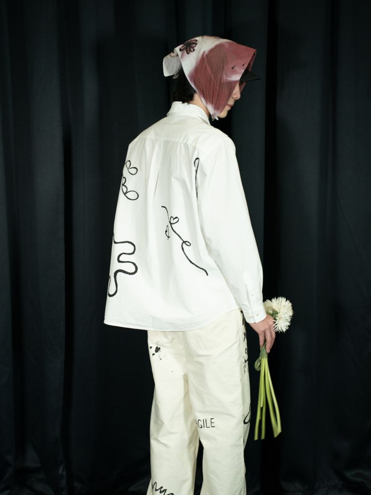 그림과 글자들이 만나 흩어지고 겹치는 순간, 더이상 옷이 아닌 하나의 예술 작품으로 새로운 이름을 갖게 됩니다.