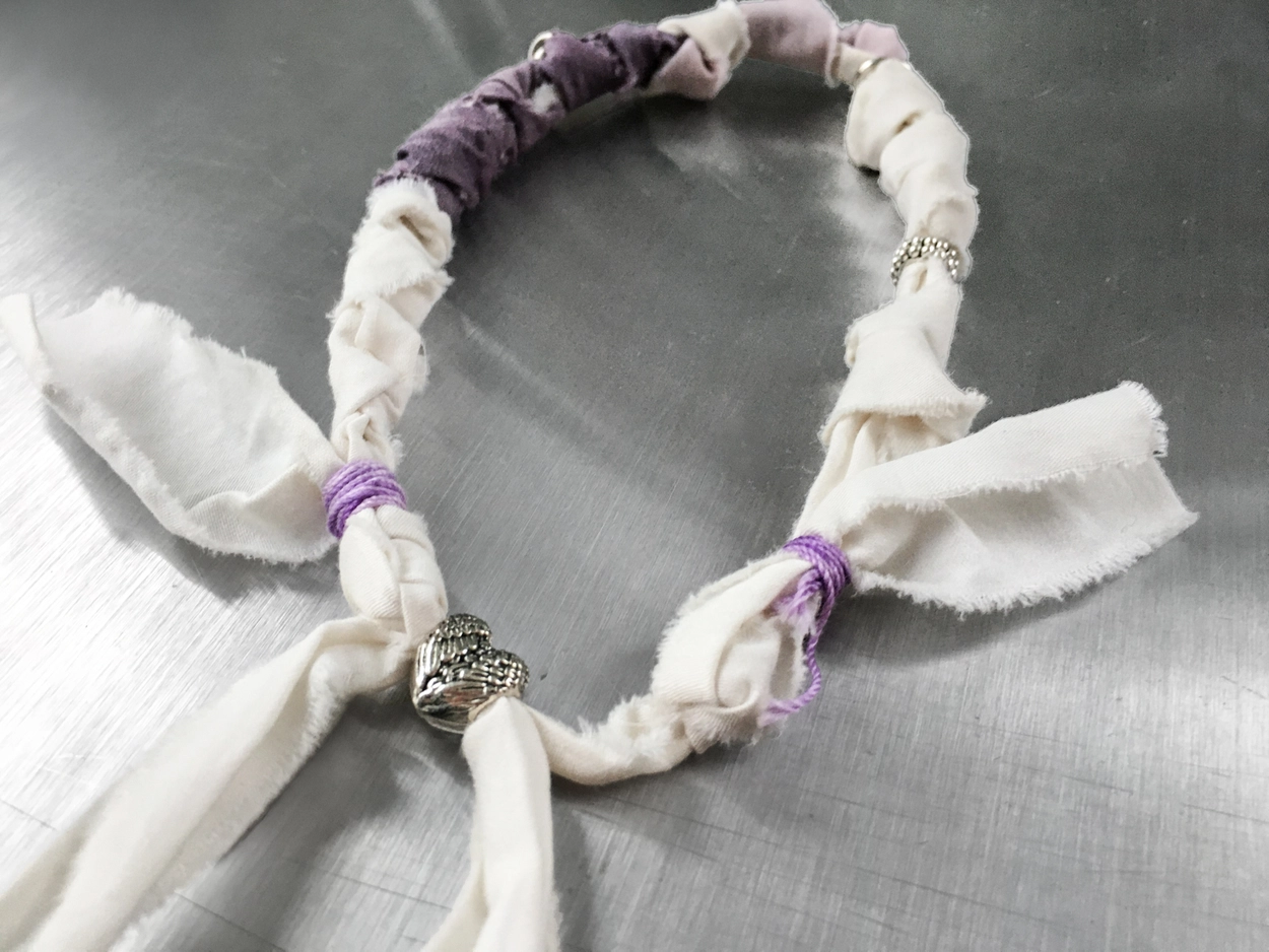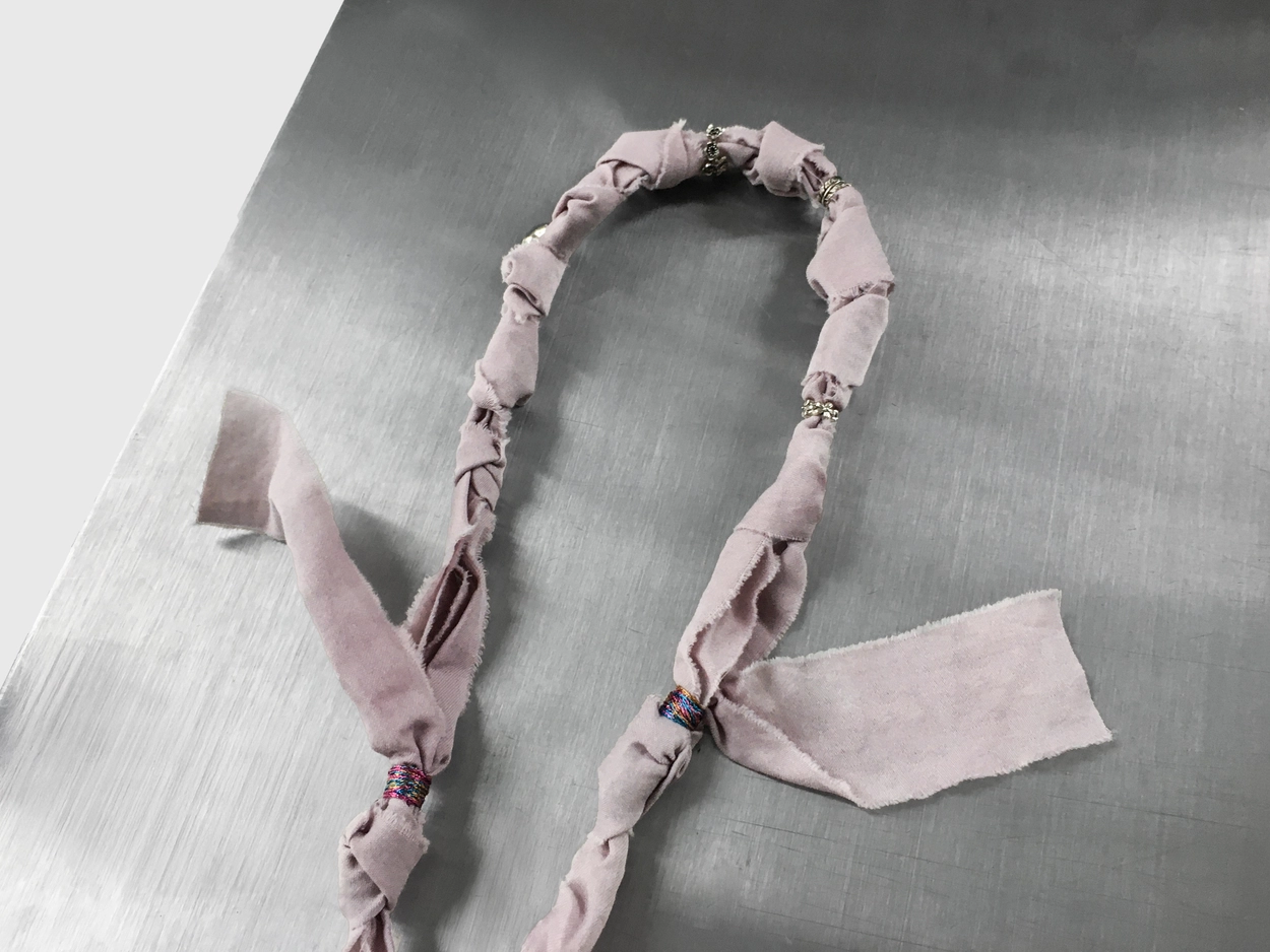 옷을 만들고 남은 자연염색 원단 조각을 조심스럽게 꼬아 완성한 패브릭 주얼리입니다.