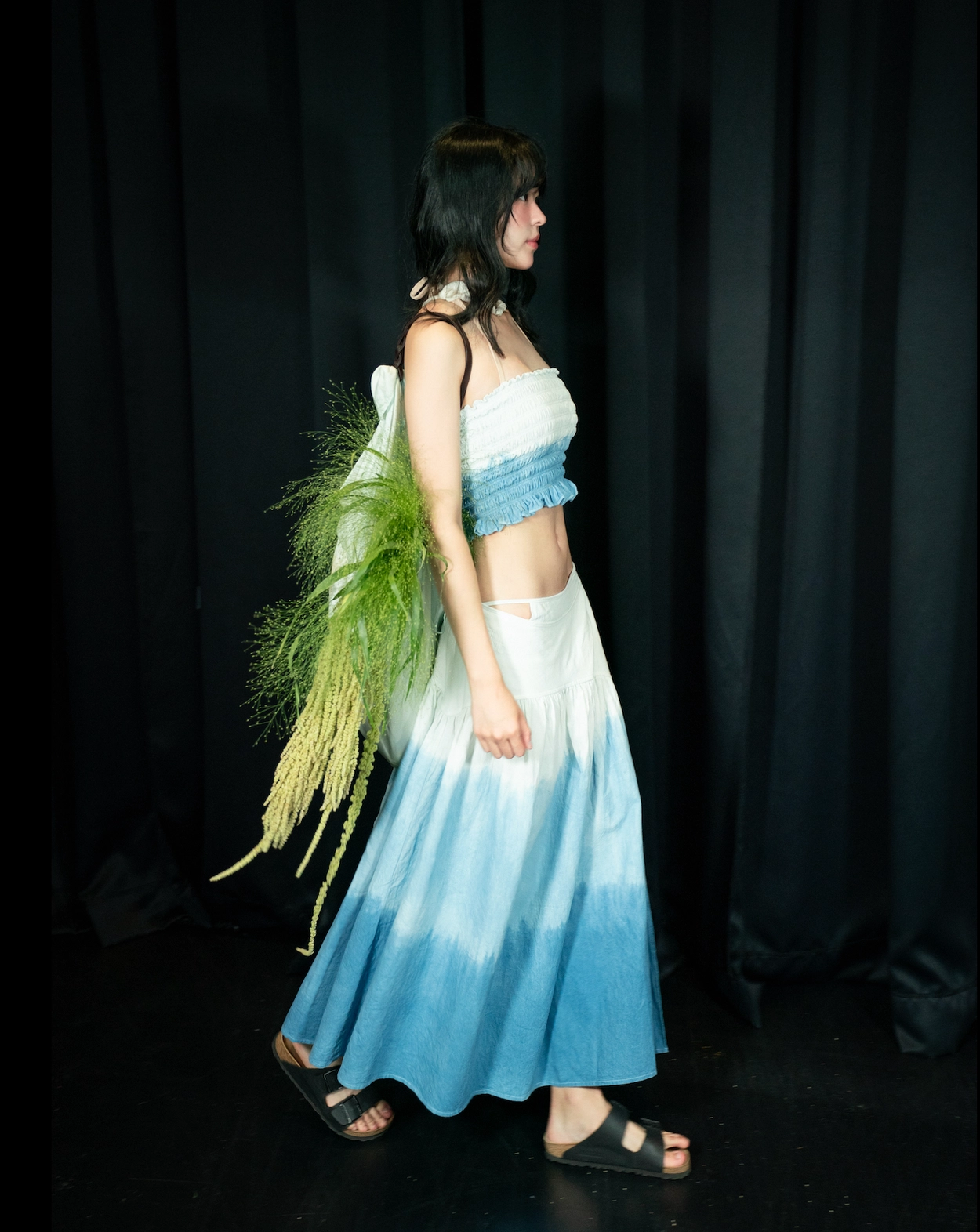 인디고를 여러 단계의 그라데이션으로 염색해