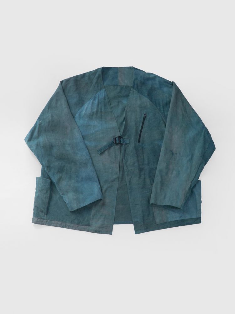 감물로 1차 염색한 뒤 쪽으로 2차 염색하여 오묘한 텍스쳐가 매력적인 원단을 워크웨어 테일러링 브랜드인 러스티호미스와 협업해, 시그너처 아이템인 호미 자켓과 호미 바지로 만들었습니다.