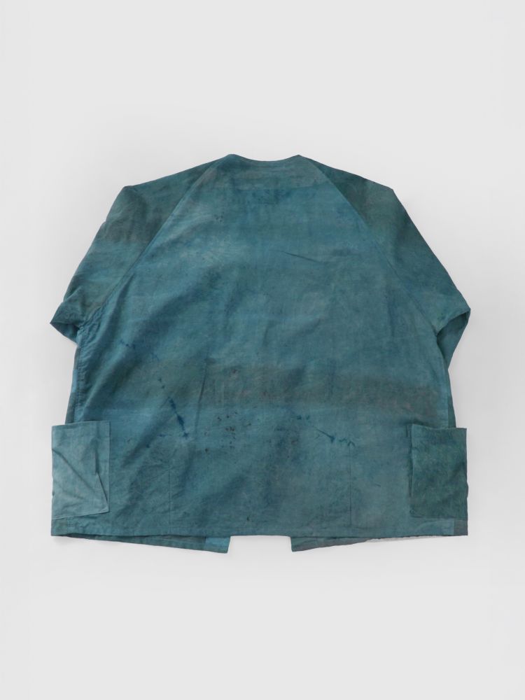 쪽을 원하는 만큼 블랜딩해 깊고 선명한 블루 베이스를 완성합니다. 천을 쪽물에 충분히 담근 후 공기중에 펼쳐 발색을 합니다. 이때, 의도적으로 천을 뭉쳐 텍스쳐를 만들기도 합니다. 그렇게 반복해 텍스쳐와 컬러 레이어를 쌓아갑니다.