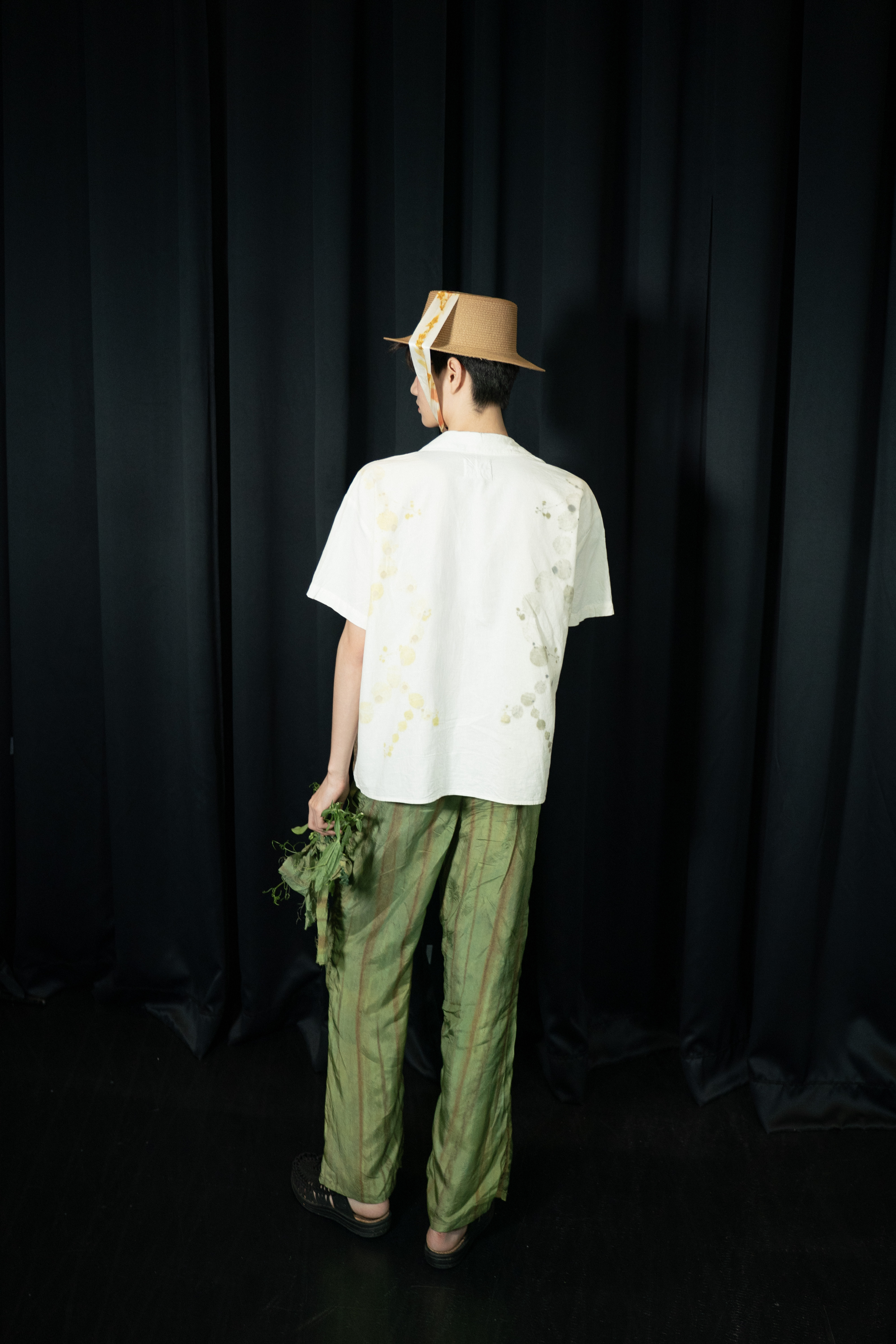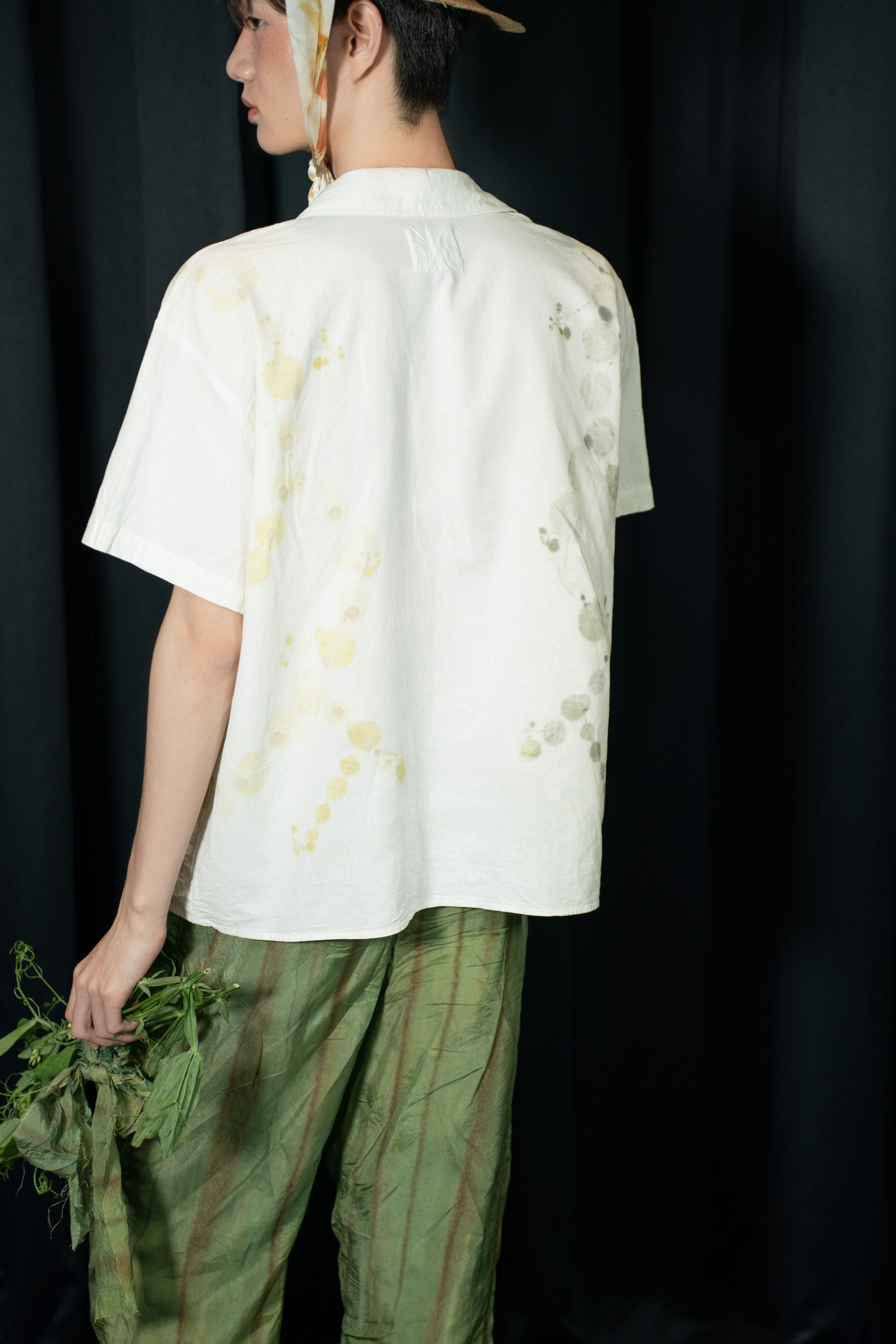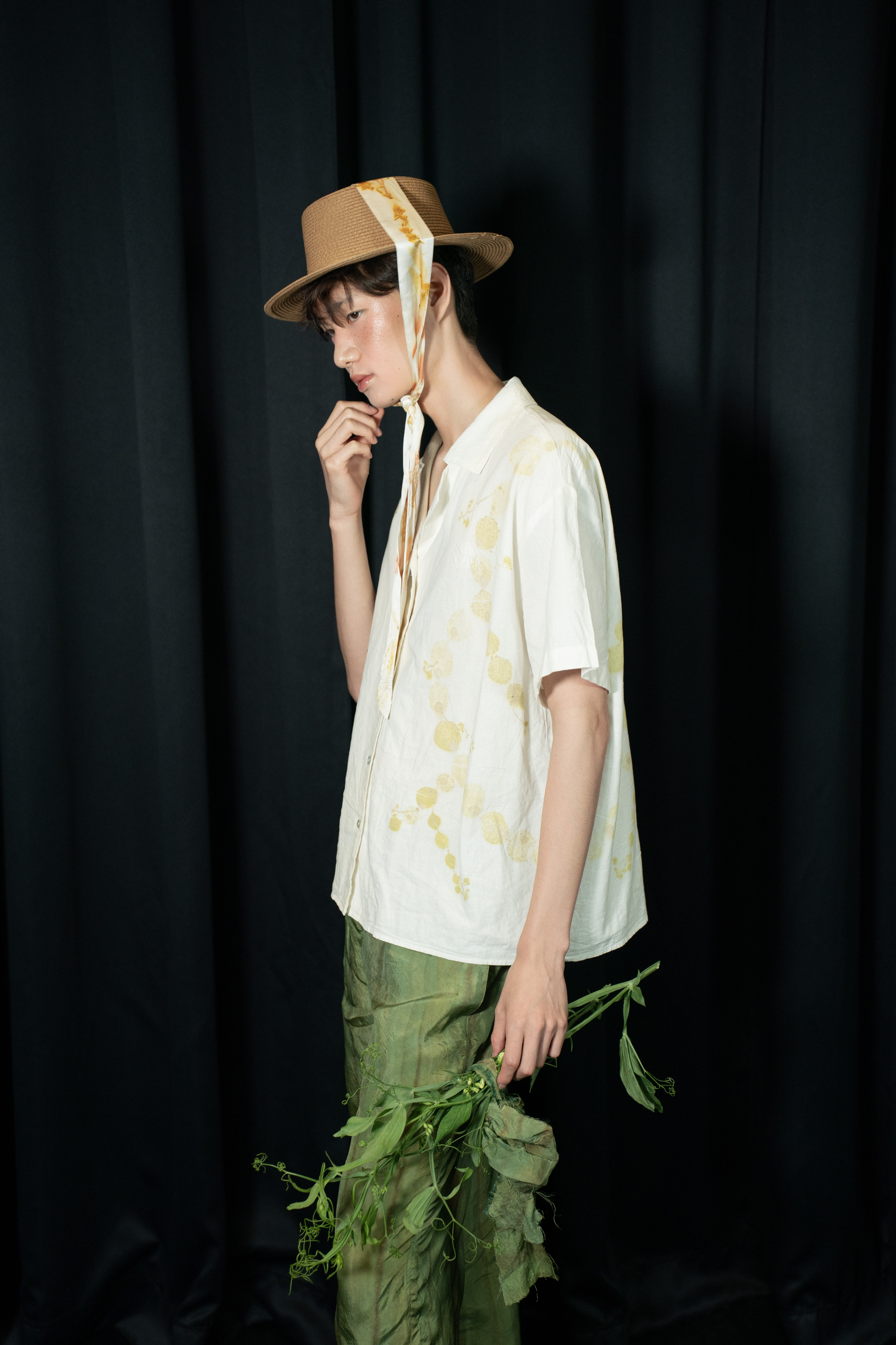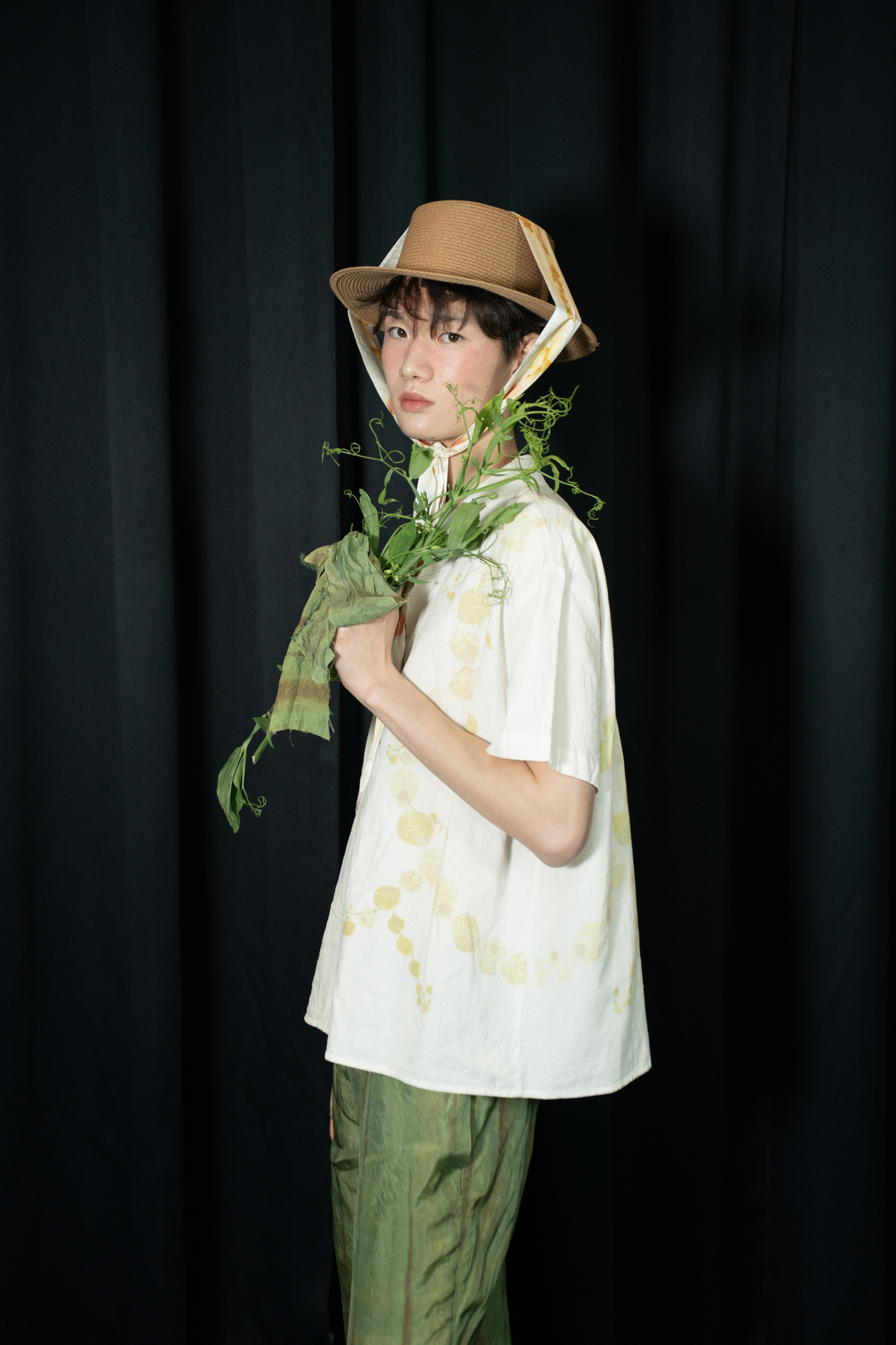 정원에서 잎을 따는 일부터, 셔츠 위에 하나하나 배치하며 디자인하고, 염색한 뒤 세탁하고 다림질을 하는 일까지 시간과 정성을 들여 핸드메이드로 만듭니다. 매염에 따라 노랑/카키/프라운 톤으로 표현됩니다. 염색이 끝난 뒤 은은하게 스며나오는 잎사귀 향 역시 염색의 기쁨 중 하나입니다. 지극한 사랑이 스며든 세상에서 단 하나밖에 없는 나만의 특별한 셔츠를 입어보세요.
