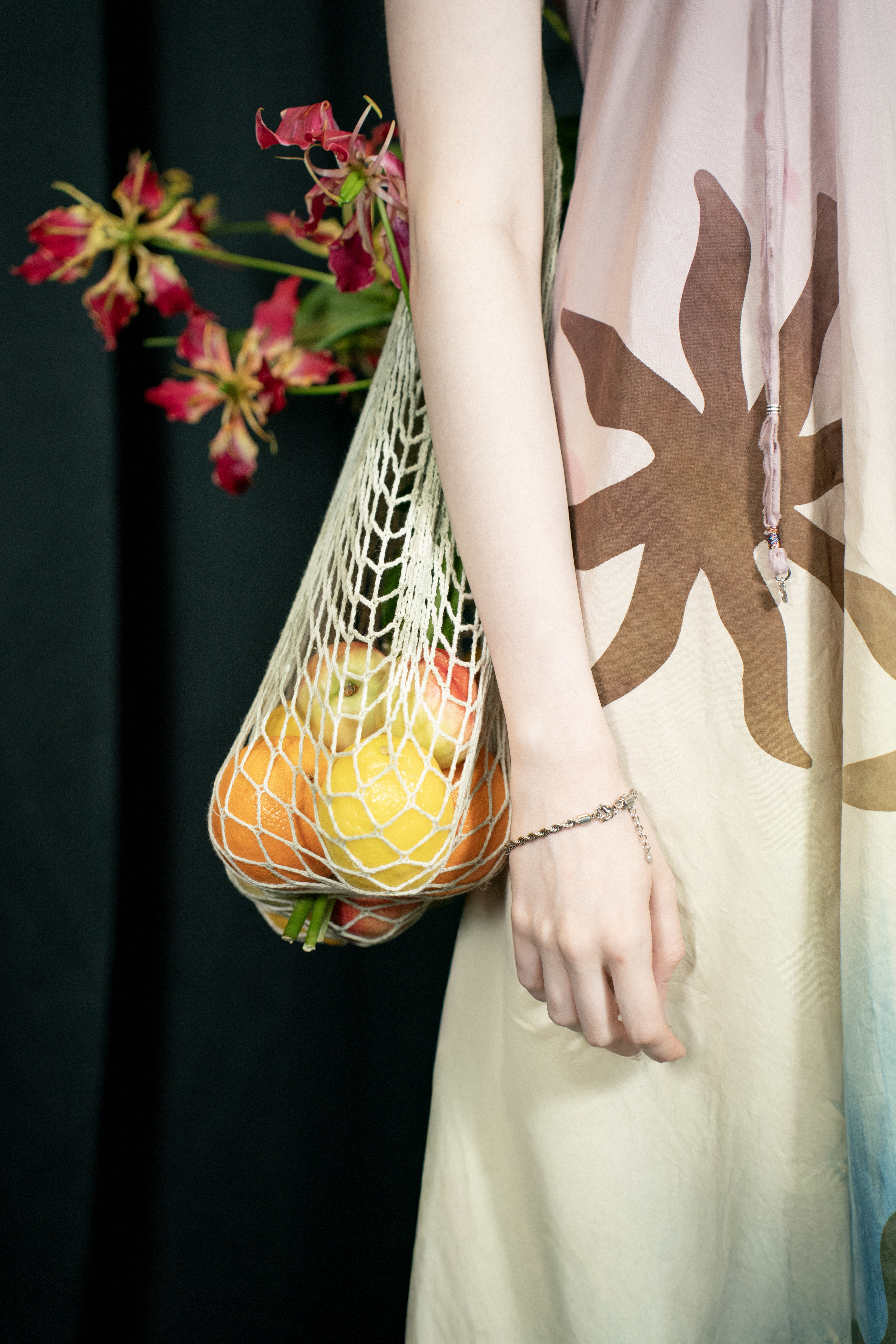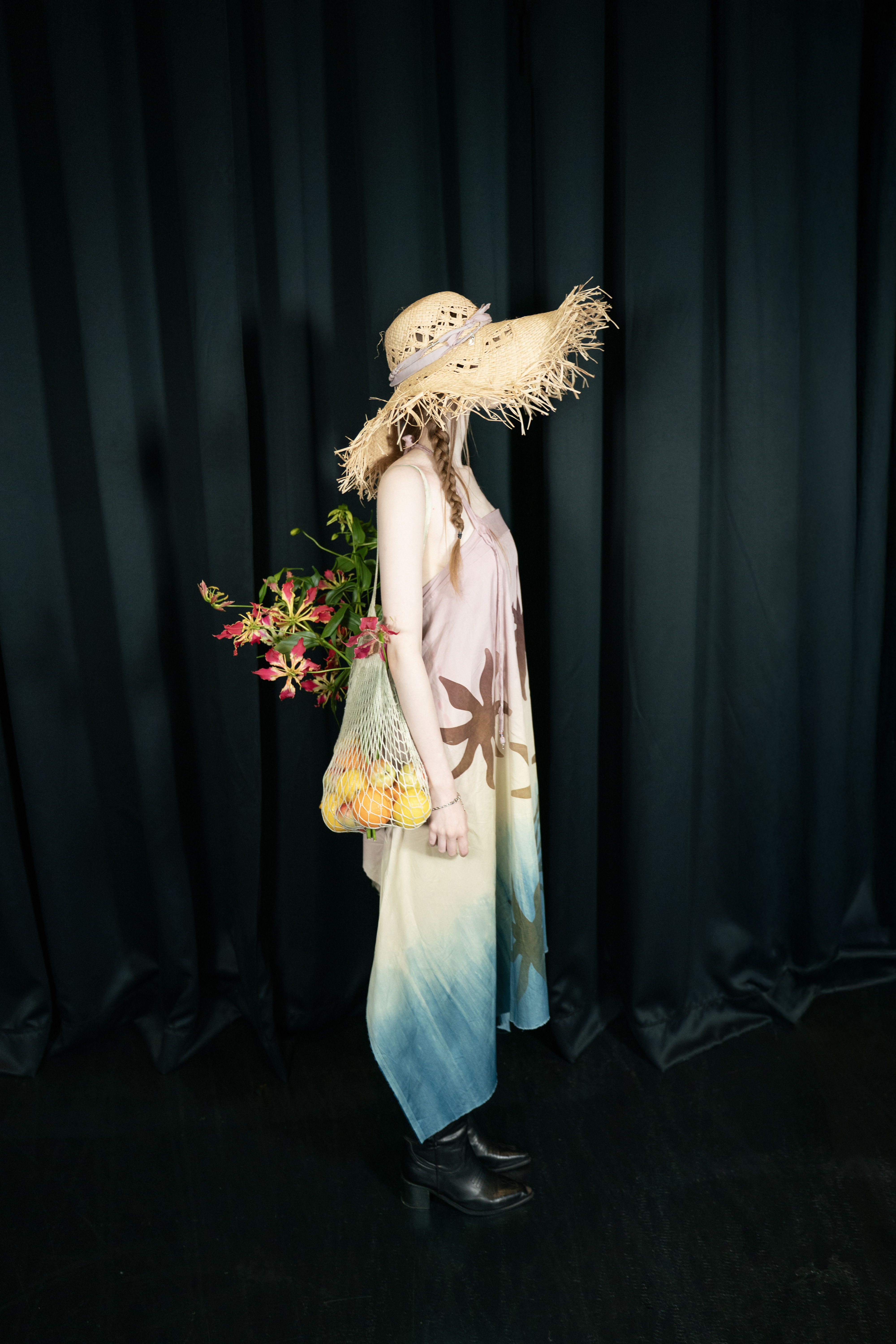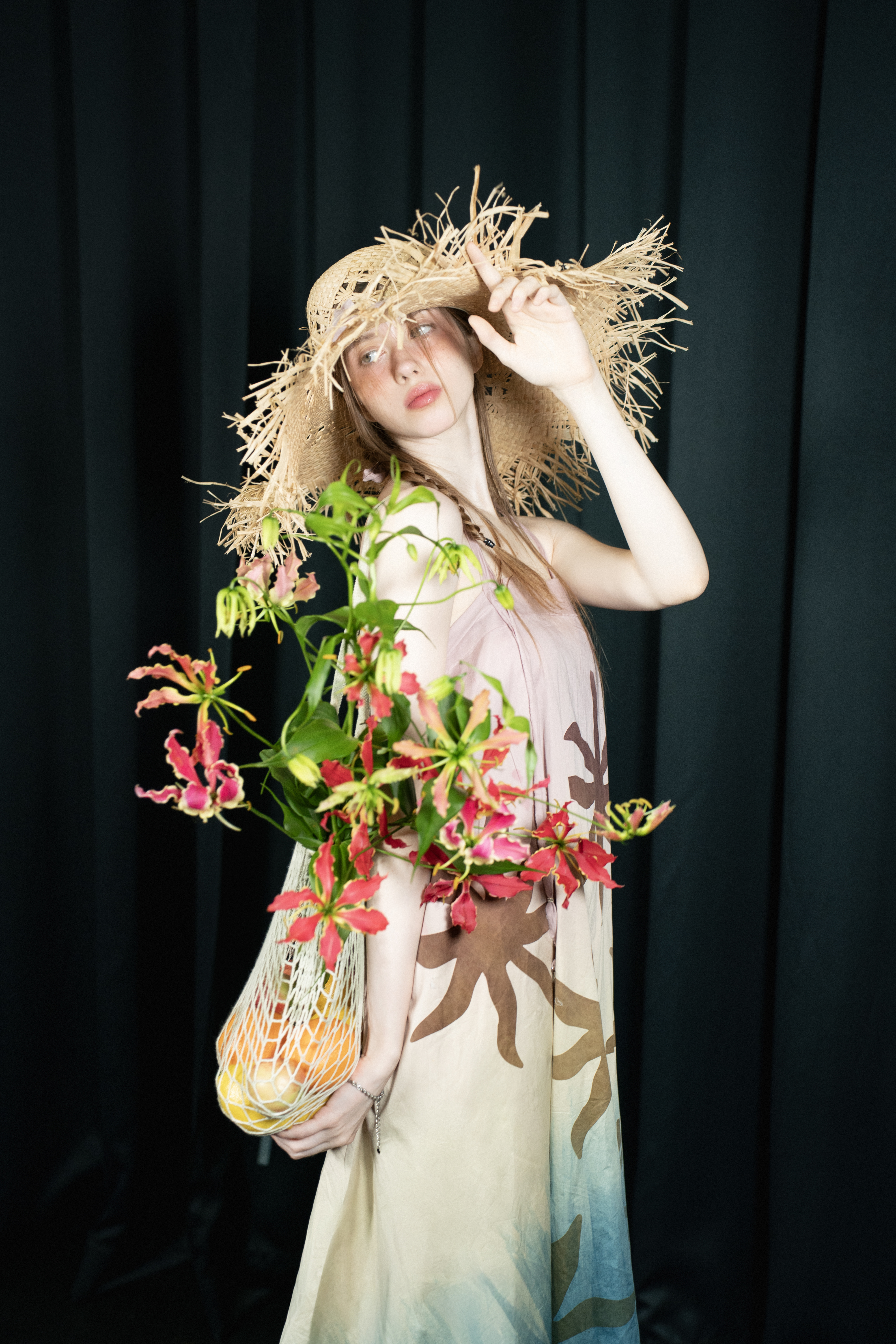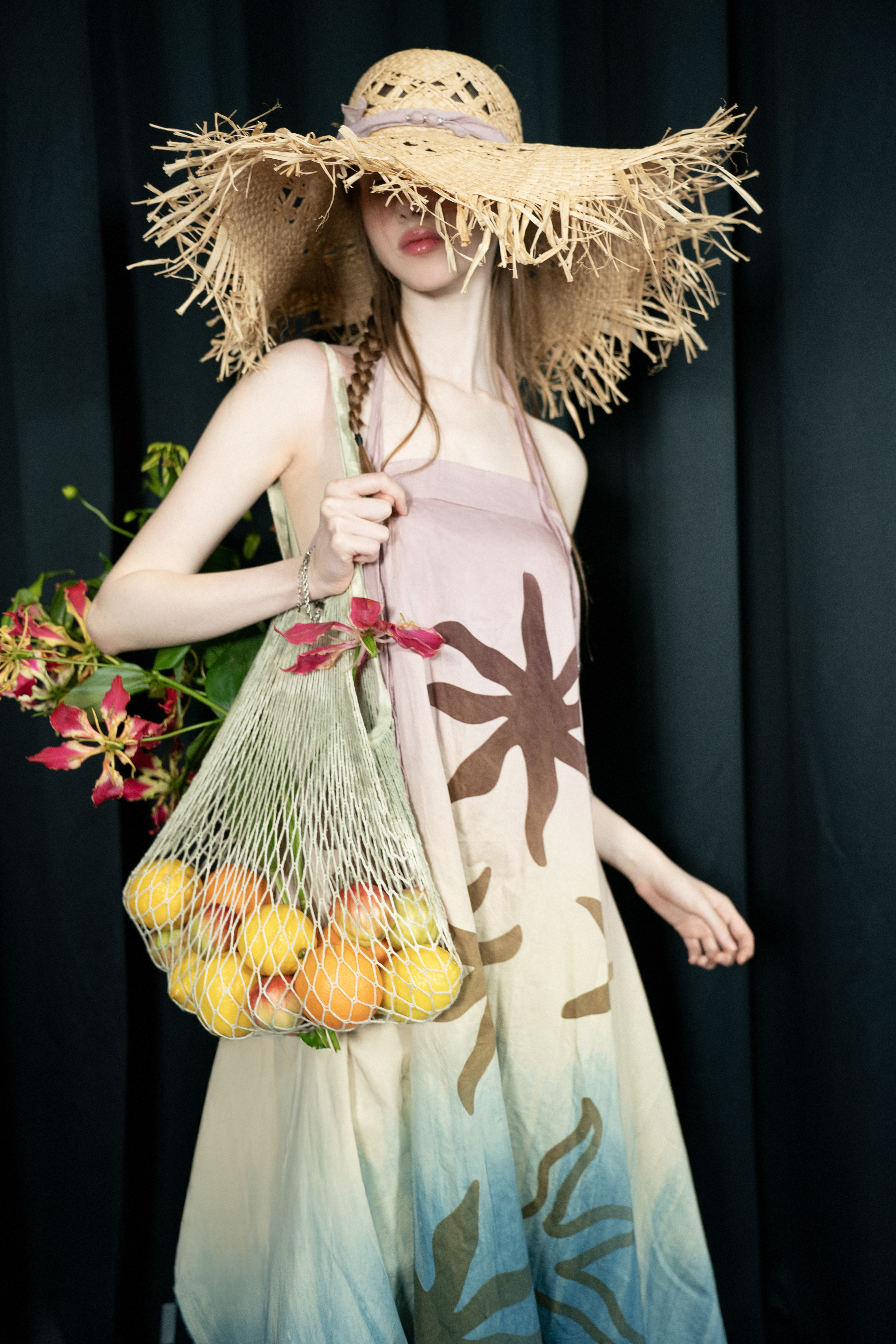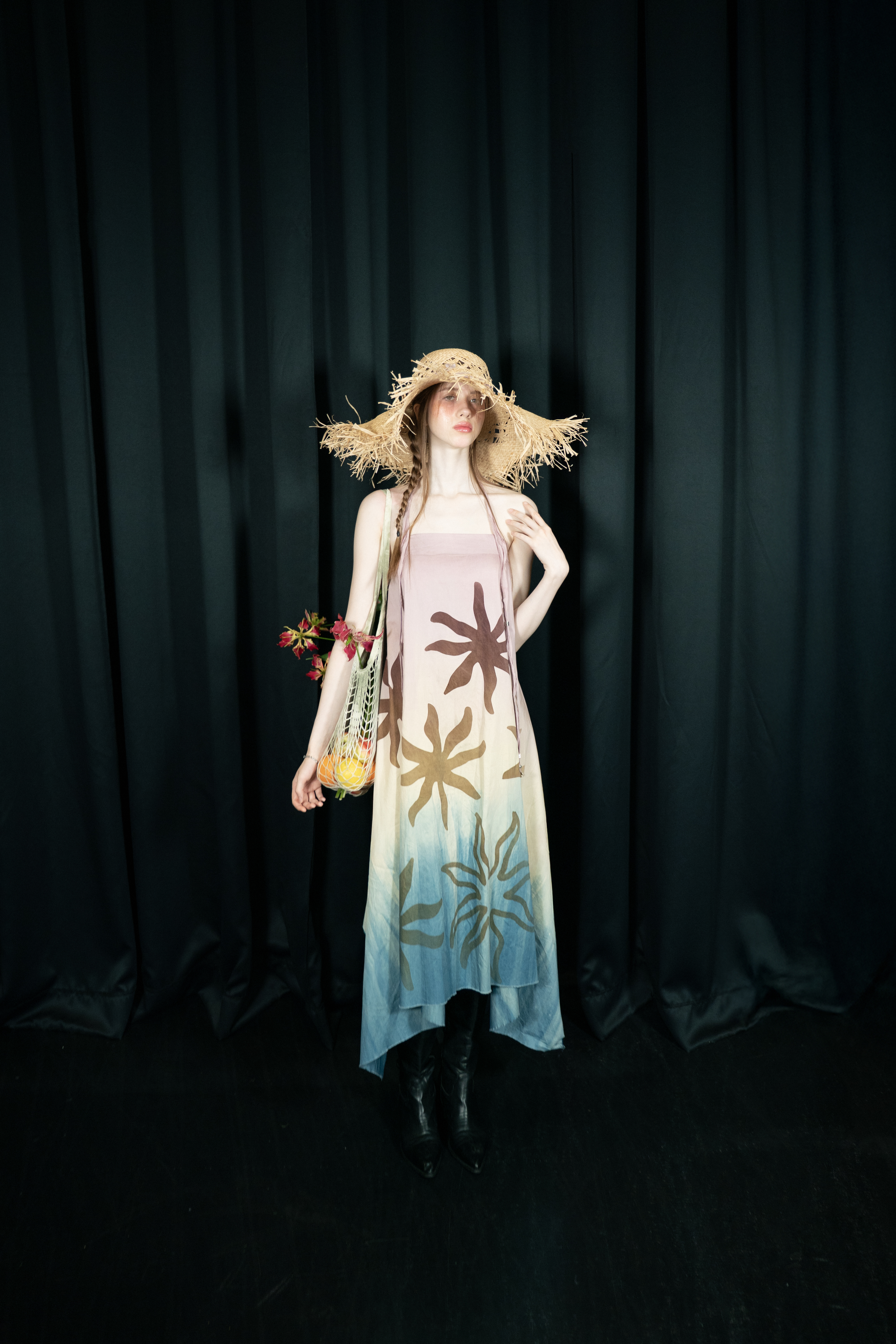 여름의 제주, 태양의 뜨거운 빛이 부서져 내립니다. 짙게 타오르는 강렬한 열기 아래 부서지는 파도와 여행의 들뜸이 뒤섞여 이글거립니다. 바다 위 노을 지는 풍경이 떠오르는 그라데이션과 과감한 태양의 패턴은 찬란한 서머 베케이션의 낭만적인 순간을 고스란히 담아냈습니다.