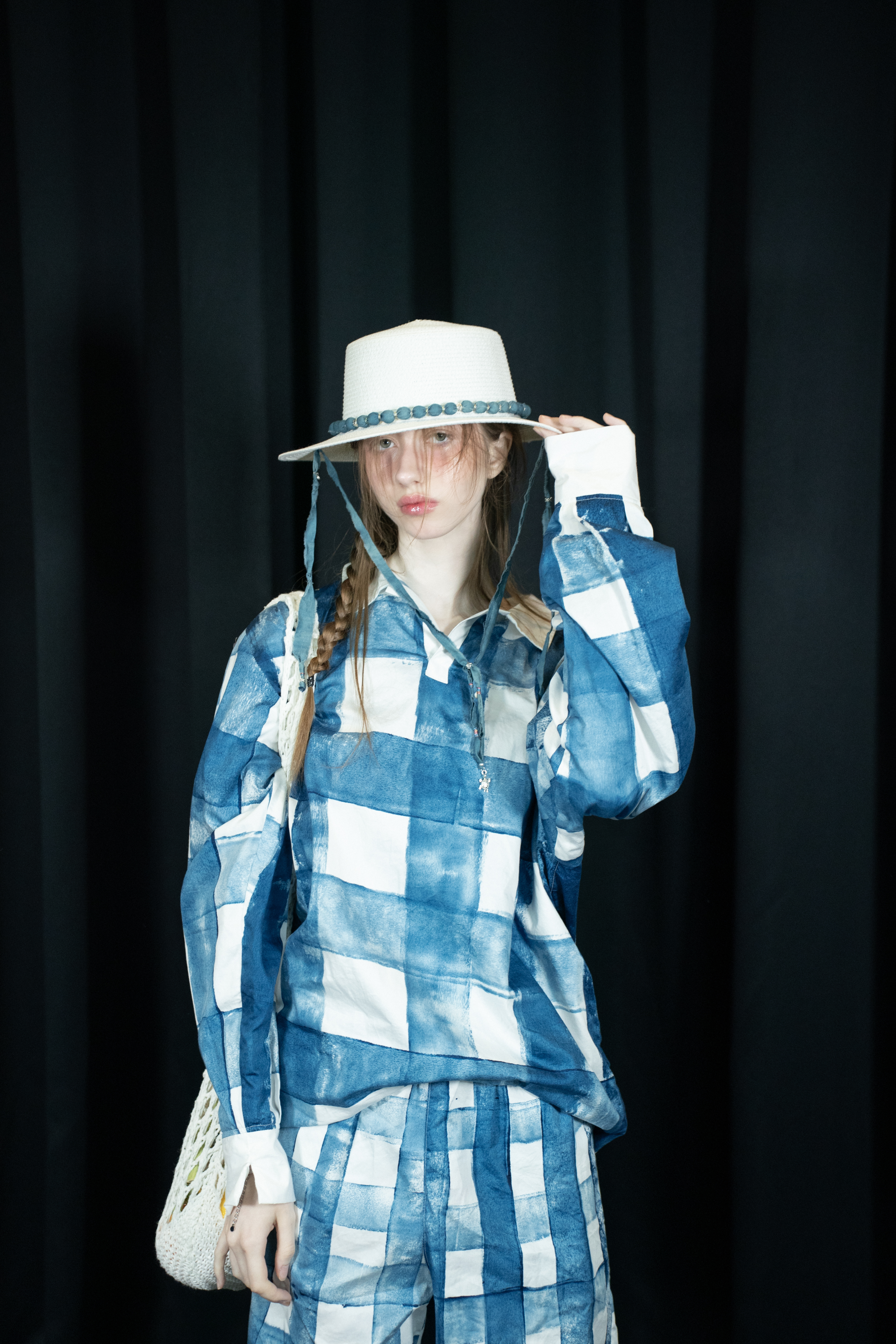 여름의 공기처럼 자유롭게 흐르는 선과 서로 겹치며 교차하는 패턴은, 만남과 헤어짐을 반복하는 인연과도 같습니다. 대담하게 펼쳐진 볼드한 체크 패턴은 시원한 여름의 자신감을 드러냅니다.