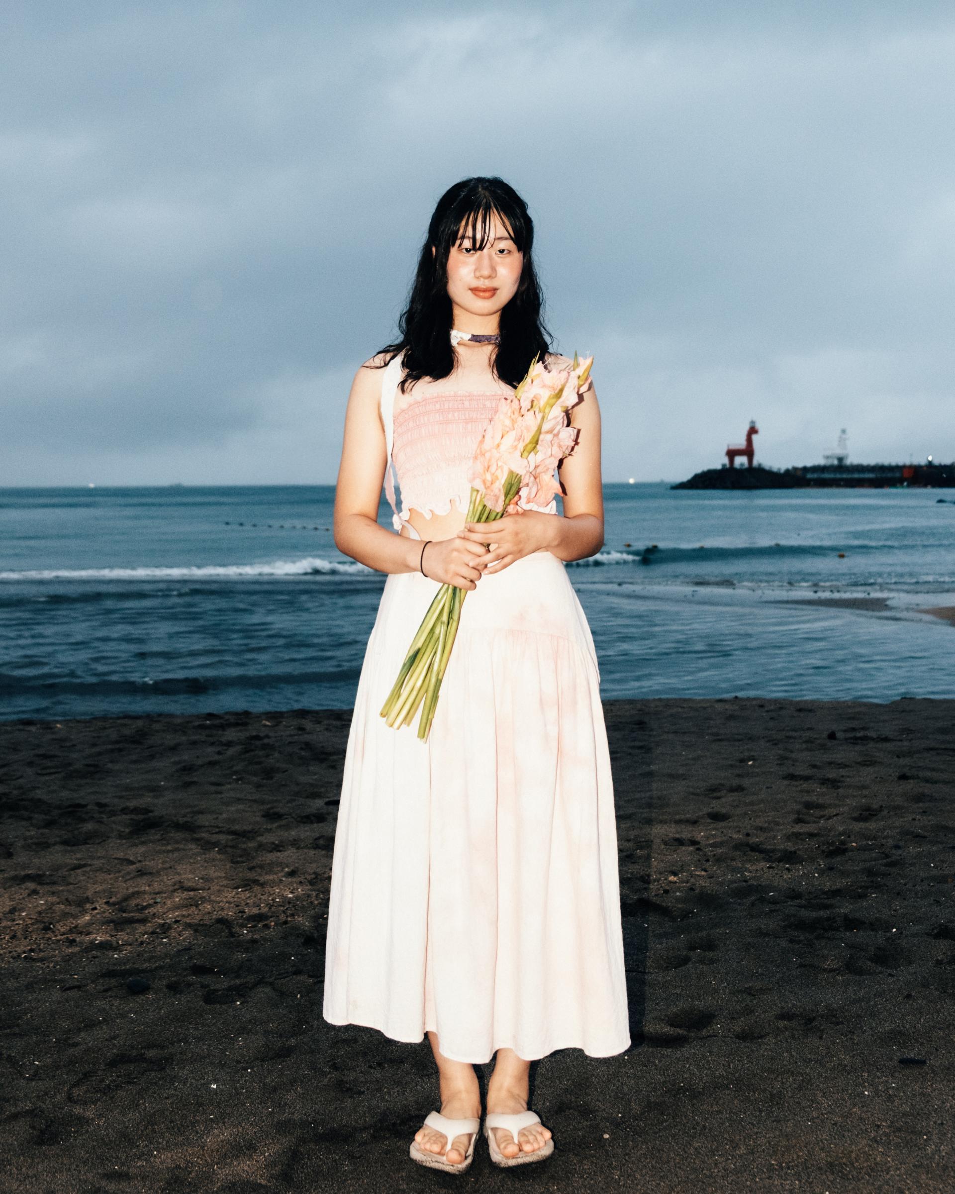 움직일 때마다 춤추듯 일렁이는 리본은 페미닌하면서도 우아한 이미지를 남기며, 목라인 옆으로 조그맣게 펼쳐지는 원단 꼬리 덕분에 마치 리본처럼 얼굴이 생기있으며 작아 보이는 효과까지 선사합니다.